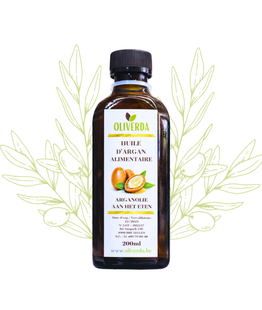 L’huile d’argan alimentaire – Oliverda est issue d’un pressage traditionnel des amandons torréfiés de l’arganier (Argania spinosa), arbre emblématique du sud du Maroc.