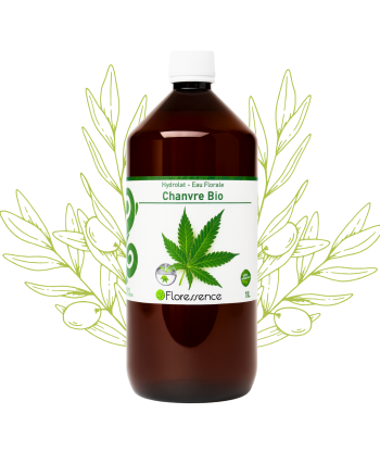 Hydrolat de Chanvre – Floressence (1 litre) : apaise le cuir chevelu, réduit l’inflammation et équilibre les zones irritées ou sensibles.