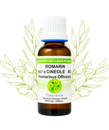 H.E. de Romarin à cinéole BIO – Floressence (10 ml) : stimule la microcirculation du cuir chevelu et active la pousse.