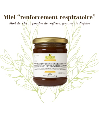 Le miel respiratoire d’Oliverda combine thym, réglisse, nigelle pour apaiser la gorge, dégager les voies respiratoires et renforcer l’immunité. Un allié naturel pour l’hiver et les périodes ORL sensibles.