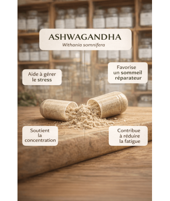 • Ingrédient principal : racine d’Ashwagandha en poudre pure