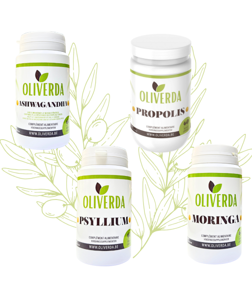 Boostez votre bien-être avec le pack complet Oliverda regroupant 4 compléments naturels haut de gamme :