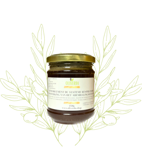 Le Miel Respiratoire d’Oliverda est une préparation naturelle élaborée en boutique pour soutenir les voies respiratoires et apaiser la gorge.