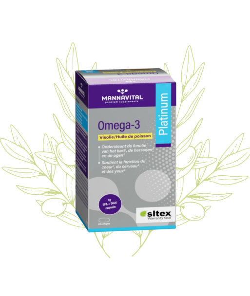 Les oméga-3 Mannavital apportent des acides gras essentiels EPA et DHA issus d’huile de poisson pure. Ils soutiennent le cœur, le cerveau, la vision et les articulations. Un complément de haute qualité pour l’équilibre général.
