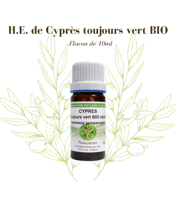 • Huile essentielle de Cyprès Toujours Vert BIO – Floressence – 10 ml : antitussive et rééquilibrante.
