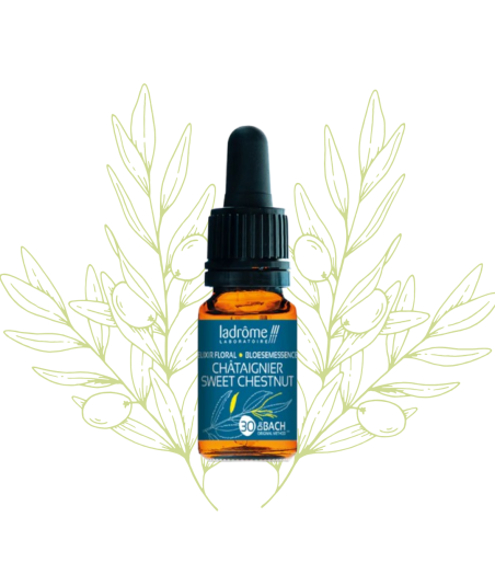 L’Élixir Floral de Châtaignier – Fleur de Bach n°30 – Ladrôme est traditionnellement associé aux périodes de profonde détresse intérieure, lorsque l’on se sent au bout de ses ressources émotionnelles.
