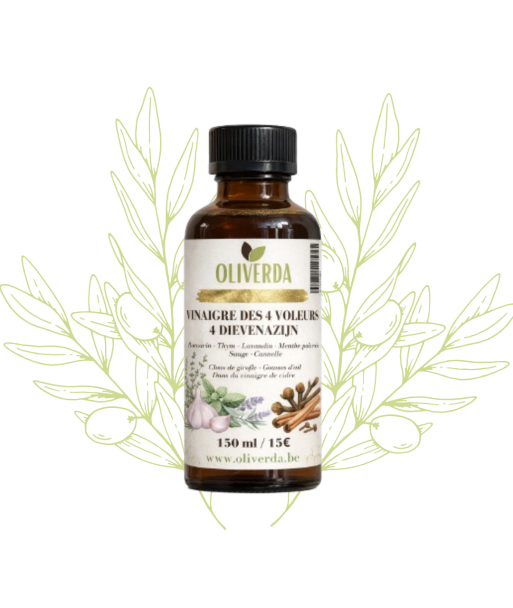 Le Vinaigre des 4 Voleurs Oliverda – 150 ml est disponible sur oliverda.be et en magasin. 👉 Une préparation emblématique, authentique et puissante de l’herboristerie traditionnelle.