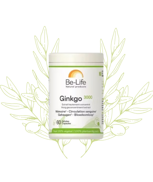 Le Complément de Ginkgo biloba Be-Life est formulé à partir d’un extrait standardisé de feuilles de ginkgo, plante de référence en herboristerie pour le soutien des fonctions cognitives et de la circulation.