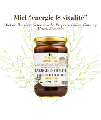 Le Miel Énergie & Vitalité Oliverda est une préparation traditionnelle fortifiante associant miel de bruyère, produits de la ruche et plantes reconnues pour leur action sur la vitalité, l’endurance et la fertilité.