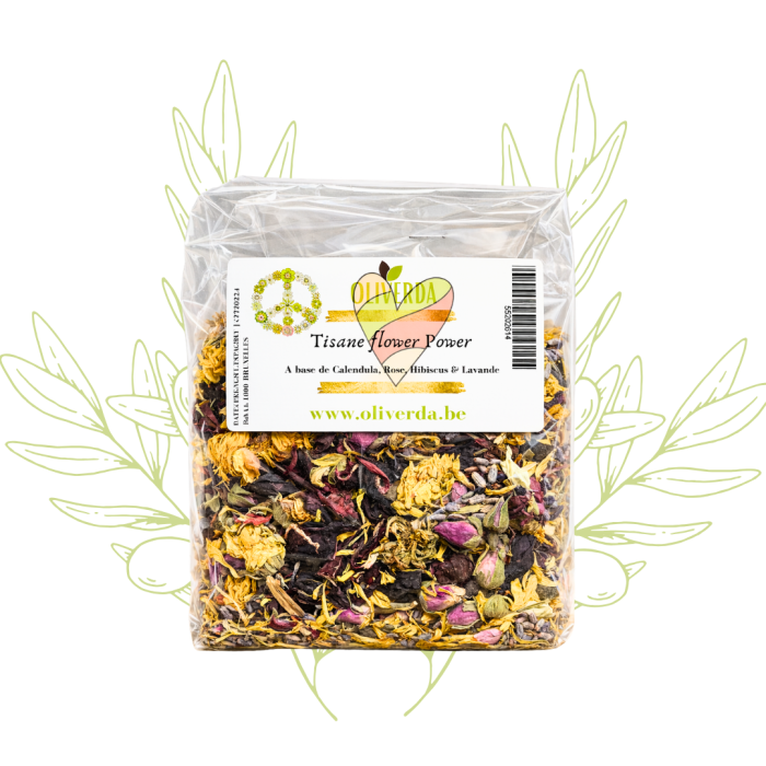 La Tisane Flower Power Oliverda est une création exclusive élaborée à partir de fleurs soigneusement sélectionnées pour leurs propriétés reconnues en phytothérapie traditionnelle. Ce mélange floral associe calendula, rose, hibiscus et lavande pour offrir une infusion à la fois délicate, aromatique et bénéfique pour l’organisme.